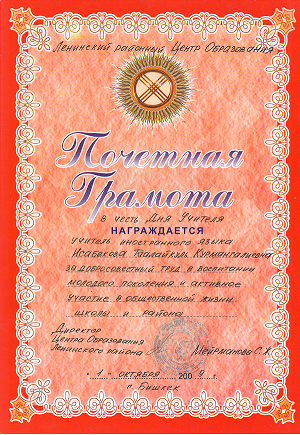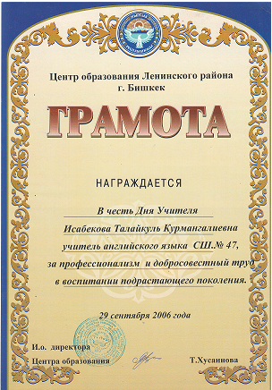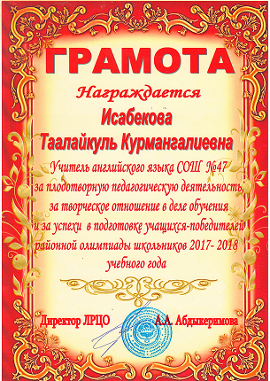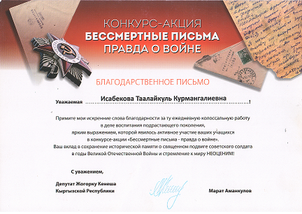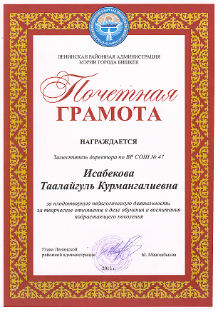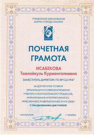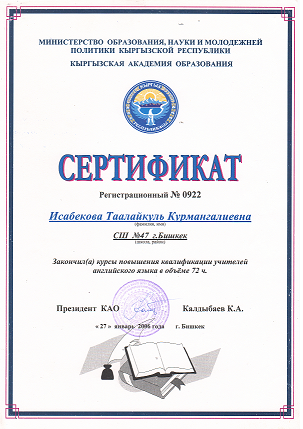 Исабекова Таалайкуль Курмангалиевна